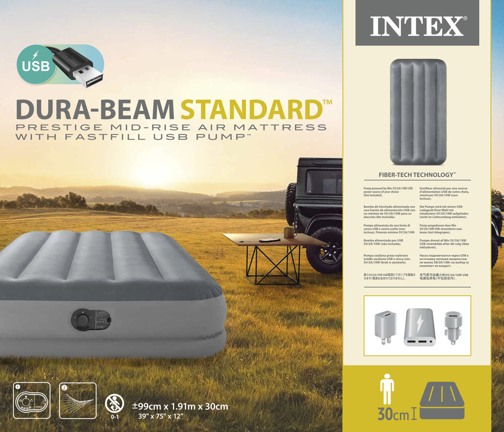 | Nafukovací postel o velikosti 99 cm x 1,91 m x 30 cm. Maximální nosnost 136 kg. Čas nafouknutí je 3,5 minuty. Snadné … |