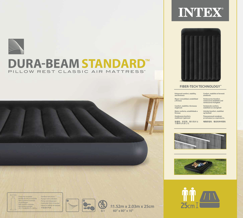 - Základní rozměr: 152 cm x 203 cm x 25 cm. Lehátko je vyrobeno z kvalitního vinylu a s jemným materiálem na povrchu. Snadné nafukování, vyfukování a uskladnění.