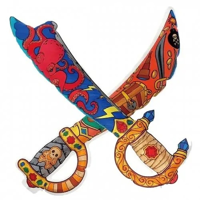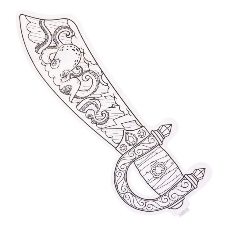 Nafukovací omalovánka pirátská šavle s motivem oceánským živlů a pokladu jsou vhodné pro malé piráty, kteří si hrají na vládce moří. Mohou si s ní barevně pohrát a vymalovat tuto šavli podle svých představ.