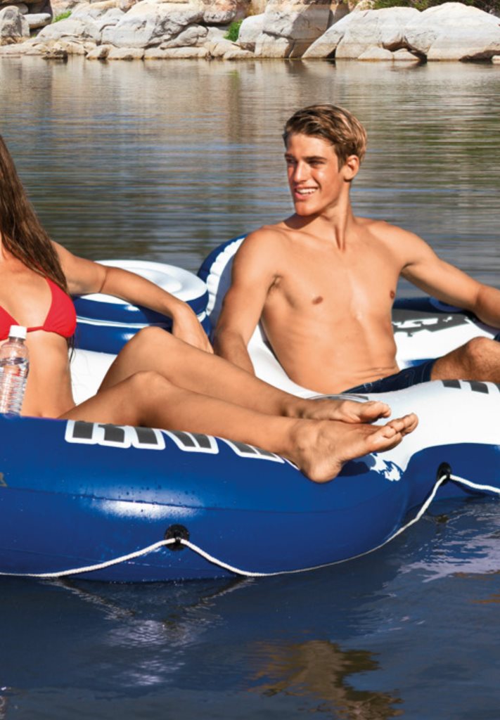 - Dvojité nafukovací sedátko do vody o velikosti 2,43 m x 1,57 m. 0,45 mm vinyl. Síťové dno. Dvě opěrátka pro pohodlné sezení. Velký vestavěný chladič s víkem. 5 vzduchových komor. 2 držadla. 2 otvory na pití. Lano po celé délce nafukovačky. Opravná náplast přiložena.