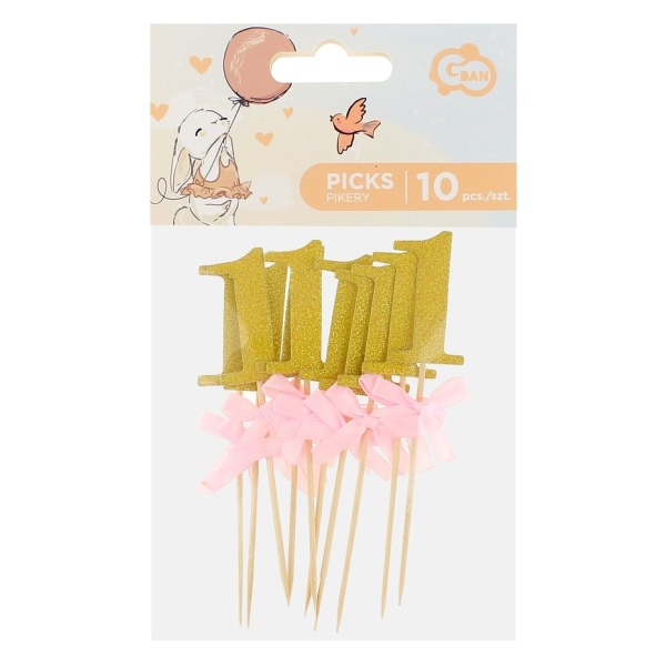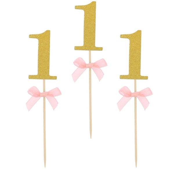 Napichovátka se zlatým číslem 1 a světle růžovou mašličkou vám nesmí chybět.