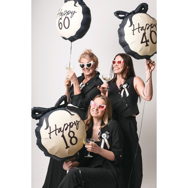 Rozeta má univerzální a velmi elegantní černo-krémovou barvu a na jejím povrchu je estetický černý nápis "Happy 18" . Celé to vypadá velmi vkusně a k oslavě vašich 18. narozenin se bude určitě hodit.