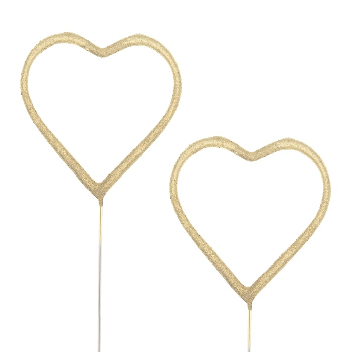 Prskavky ve tvaru zlatých srdíček vytvářejí při hoření světelný efekt v podobě stříbrných jisker.