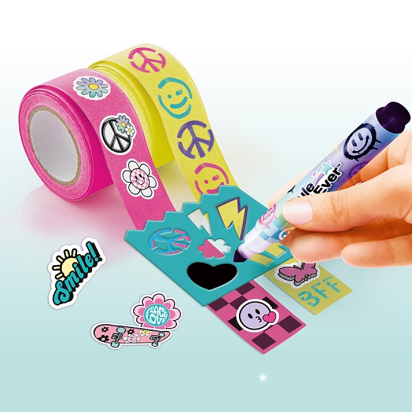 Tento kreativní set obsahuje tajný deník, 4 fixy, barevné role lepenky, archy samolepek, lepidlo, tužku, šablony.