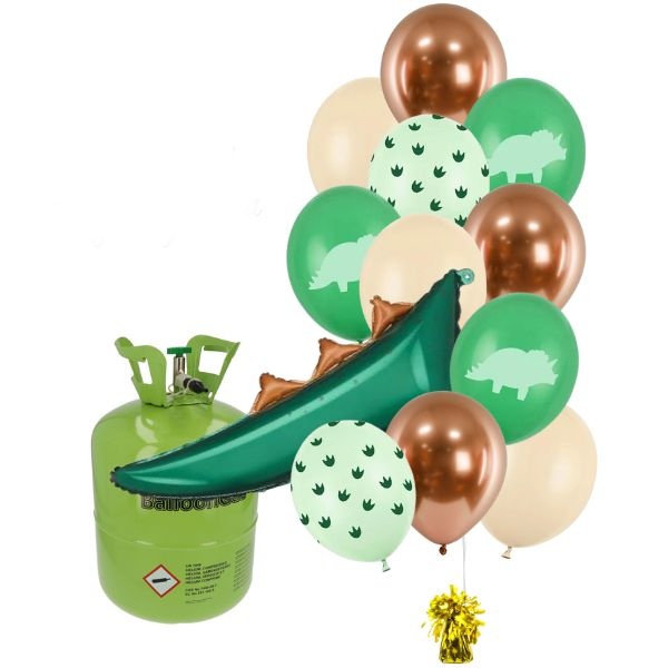 Připravte nezapomenutelnou dinosauří oslavu s naším skvělým a cenově výhodným setem balónků s heliem. Tento originální set obsahuje heliovou lahev, 12 latexových balónků o velikosti 30 cm s úžasnými motivy dinosaurů, které nadchnou děti i dospělé. V balení najdete také elegantní chromové balónky a impozantní foliový balón ve tvaru ocasu ještěra, který skvěle doplní dekoraci.