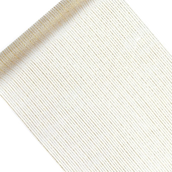 Tip k použití : Organza s dekorem zlatého proužku, je dekorační průhledná textilie, která je velmi vhodná k dekoraci stolů (středové šerpy), Organzu je možné použít i k aranžerským účelům. Hodí se na dekorační úvazy, mašle dekoraci židlí, banketových stolů, aut apod. Další organzy prodáváme na našem e-shopu v různých šířkách a v návinech do 9m. Vybrat si můžete také z několika barevných odstínů, ale i dekorů.