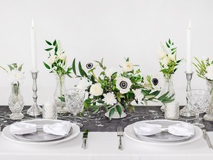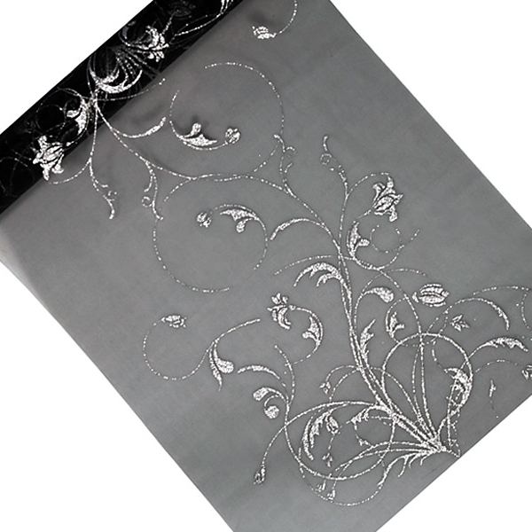 ORGANZA černá se stříbrným potiskem Secese 0,36x9m