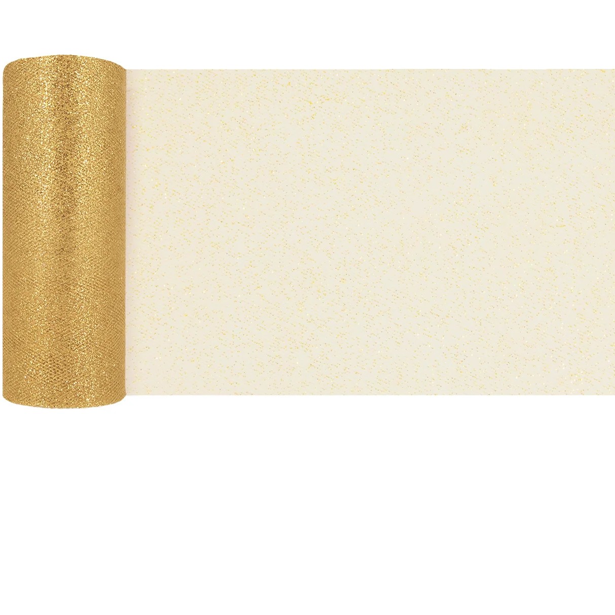 Lehký tyl se snadno tvaruje, můžete jej vrstvit, řasit a kombinovat například s dalšími zlatými party dekoracemi pro