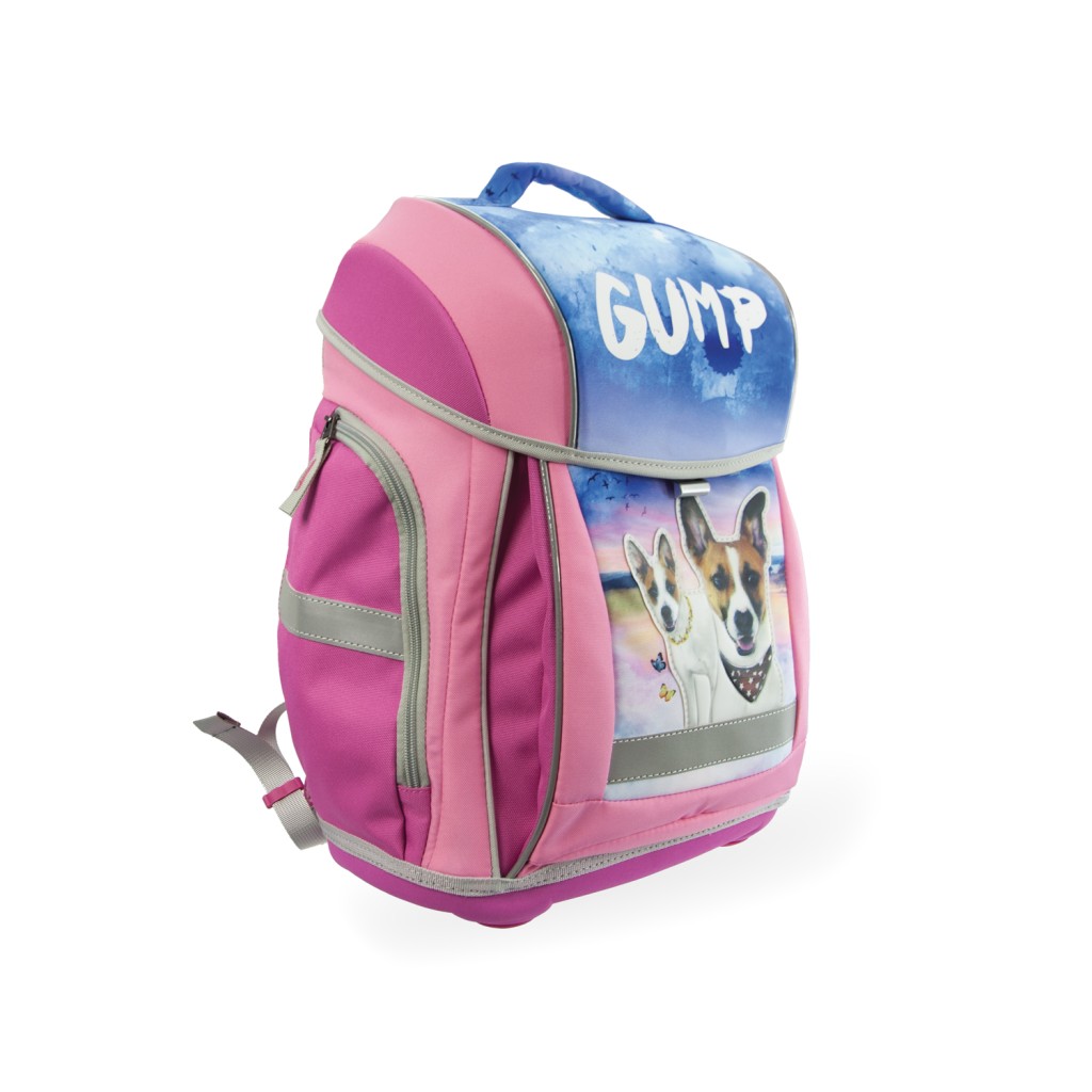 - Školní batoh s motivem GUMP bude skvělým doplňkem každé školačky. Batoh má praktické kapsy, zpěvněná záda, ergonomicky tvarované ramenní popruhy a pružnou zapínací hrudní sponu pro větší pohodlí. Rozměry batohu jsou 49 × 29 × 20 cm.