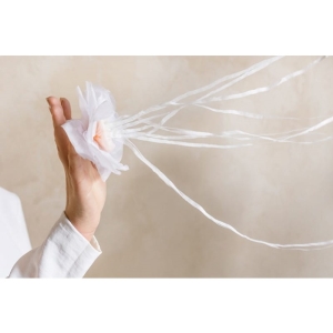 Bílé květinové stuhy jsou vhodné pro mnoho různých příležitostí, jako je svatba, první svaté přijímání, křtiny a výročí .