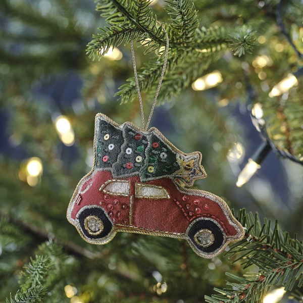 Dodejte vašemu stromečku sofistikovanost s touto originální ozdobou vánočního stromku v podobě vyšívaného sametového autíčka v červené barvě.