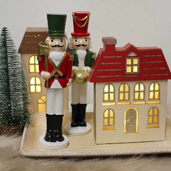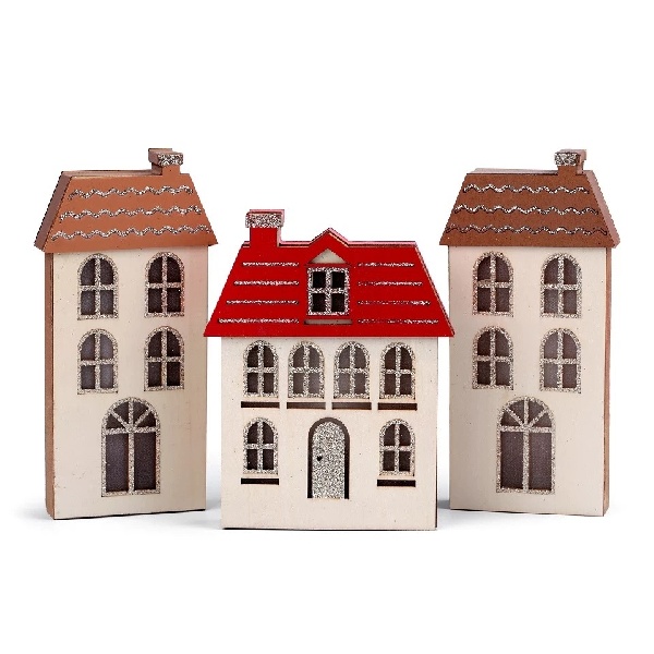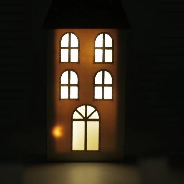 Dřevěný svítící domeček s LED osvětlením si zamilujete na první pohled. Uvnitř domečku jsou umístěné LED diody, které večer nádherně osvítí okna domečku. Detaily má zvýrazněné třpytivými glitry.