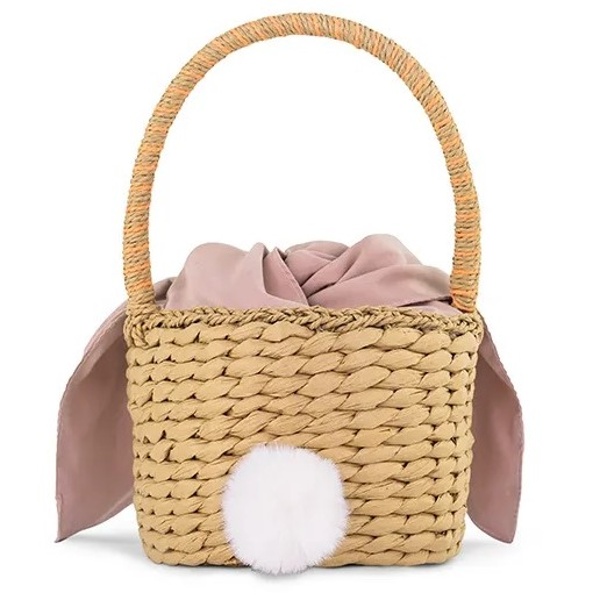Nádherný košíček Zajíček s bílým ocáskem a látkovými oušky ve starorůžové barvě oživí váš interiér na jaře nebo také o Velikonocích.
