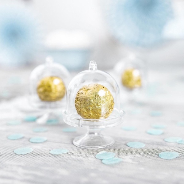 Stojánek na pralinky nebo makronky z bezbarvého plastu, ideální pro prezentace pro hosty jak na narozeninové, tak i na svatební tabuli.Ideální doplněk také do svatebního candy baru.