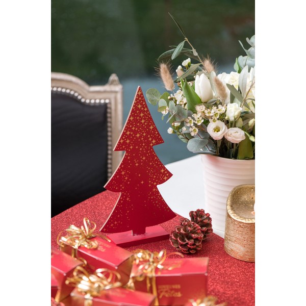 | Krásný dekorační stromeček v červené barvě, zdobený zlatými hvězdičkami. Tato dekorace vám ozdobí nejen vánoční … |