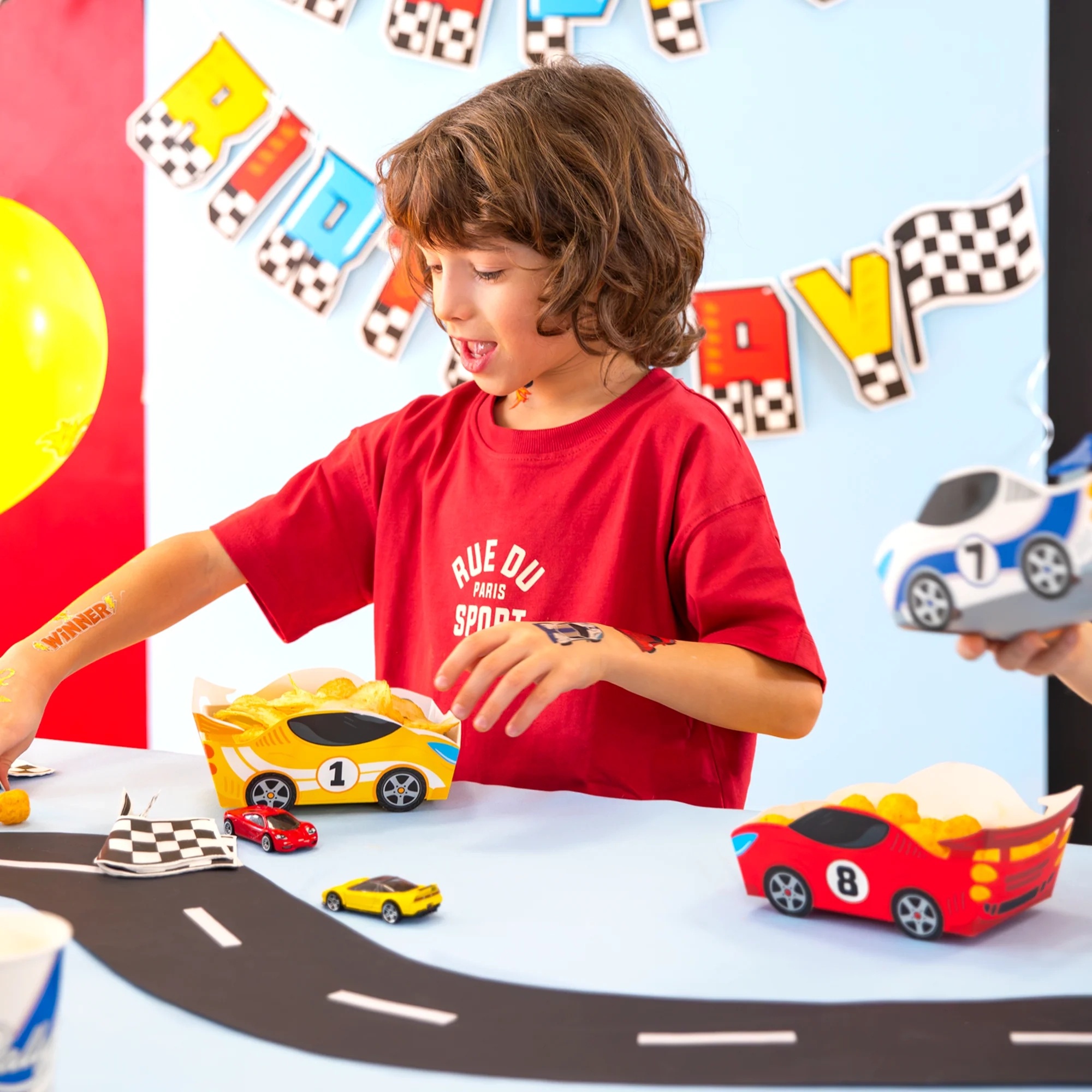Motiv „Race On“ s autíčky dodá stolování dynamiku a energii, takže se perfektně hodí na tematickou závodní nebo automobilovou párty. Díky jednotnému designu snadno sladíte celý party nádobí a výzdobu na narozeniny do jednoho stylu.