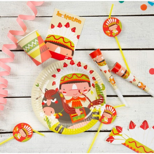 K indiánské párty neodmyslitelně patří také stylová výzdoba a doplňky indiánského stolování.
