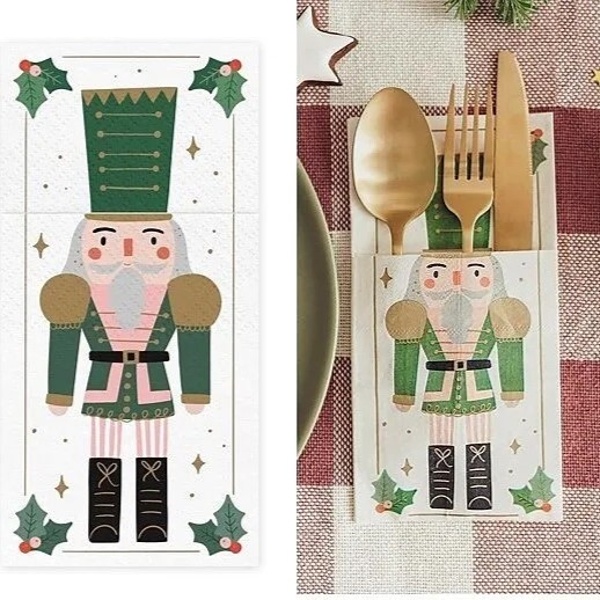 Louskáčkové papírové ubrousky s kapsou na příbo mají rozměr cca 10 x 20 cm.