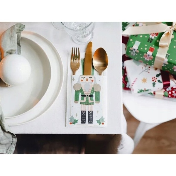 Kapsička na příbory Louskáček je krásným doplňkem prostírání vánočního stolu.
