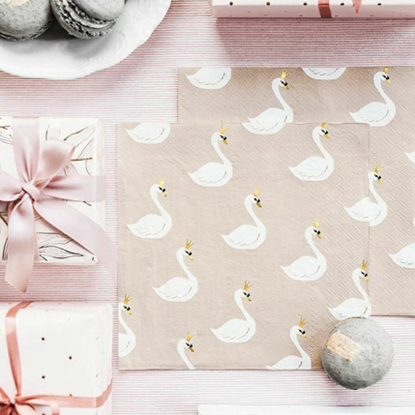 Papírové ubrousky s motivem labutí v béžové barvě mají rozměr cca 33 x 33 cm po rozložení.