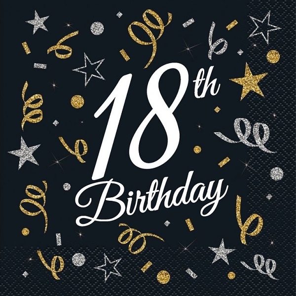 Tyto stylové papírové ubrousky jsou skvělým doplňkem pro oslavu krásných 18. narozenin.