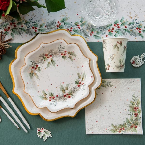 Papírové ubrousky s větvičkami cesmíny jsou ideální volbou pro vánoční stůl, zimní setkání s rodinou, firemní večírky nebo vánoční párty.