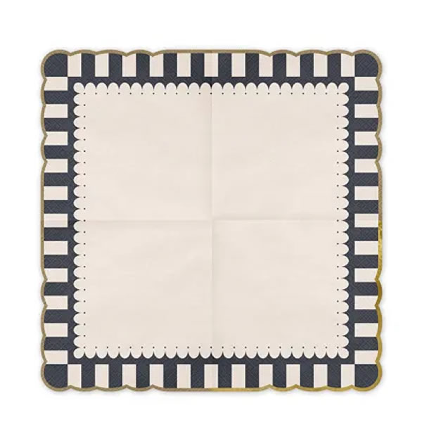 Díky designu jsou tyto elegantní papírové ubrousky s lesklým zlatým okrajem nejen praktickým doplňkem, ale také nezbytnou součástí vaší párty výzdoby. Unikátní kombinace černé a béžové barvy dodá vašemu prostírání luxusní a tajemný prvek.
