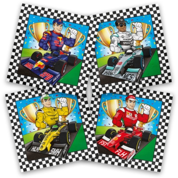 Papírové ubrousky Formule 1, které nesmí chybět na žádné narozeninové nebo tématické párty pro malé i větší závodníky a fanoušky Formule 1.