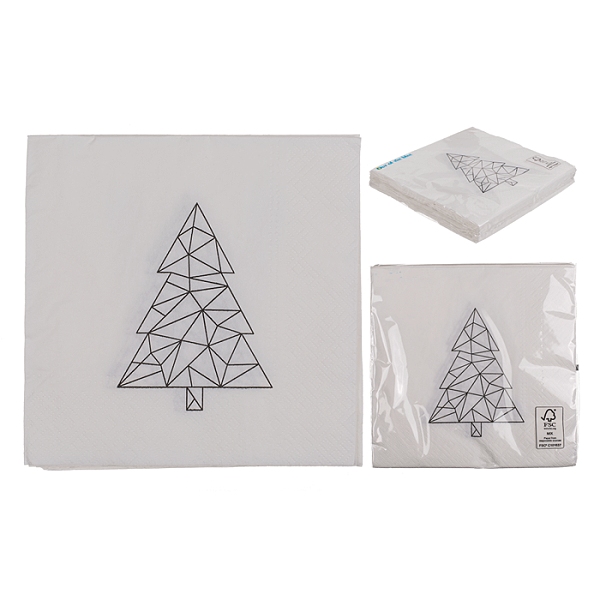 Bílé vánoční ubrousky s trendovým geometrickým vzorem vánočního stromečku budou krásným doplňkem na vánoční tabuli.