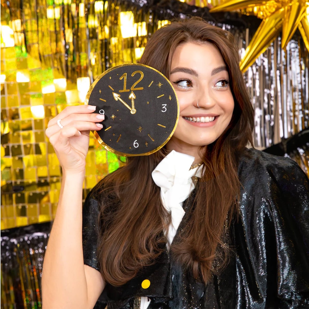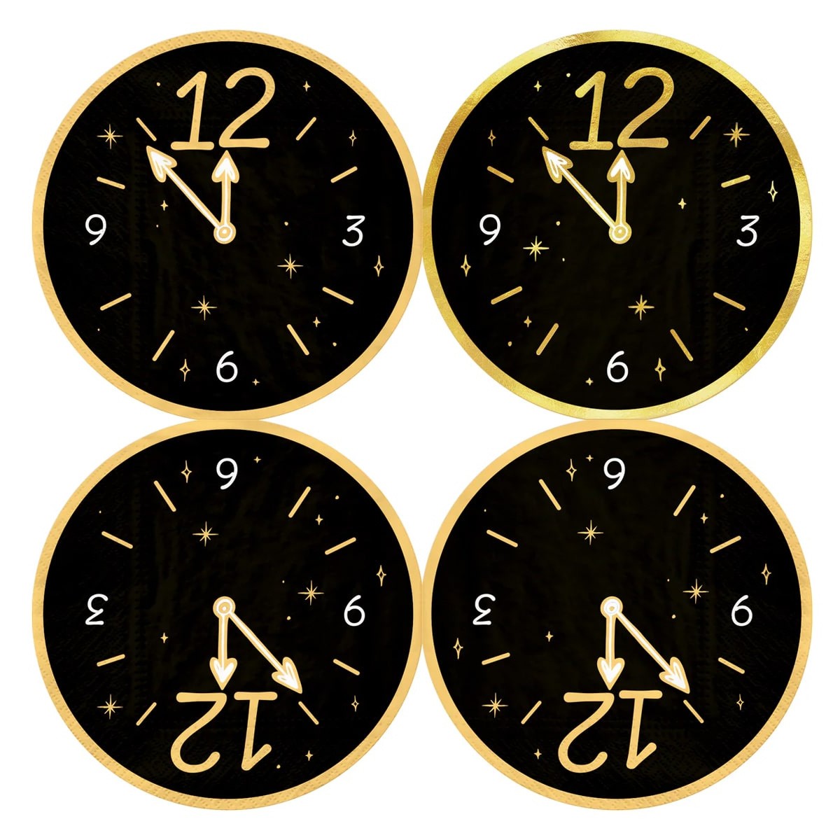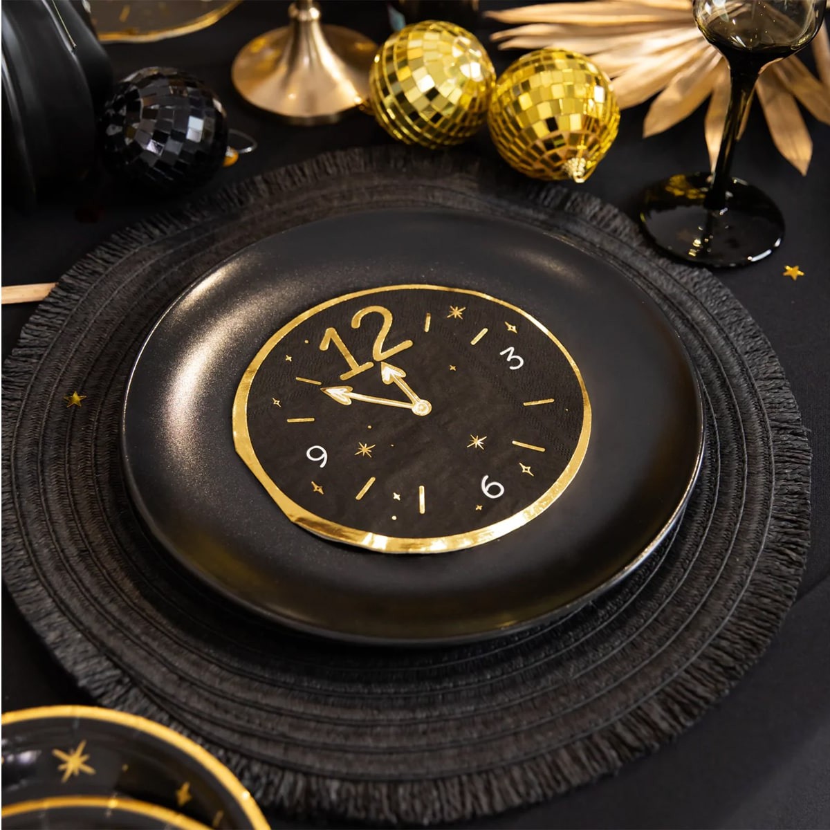 Krásné papírové ubrousky ve tvaru hodin označujících, které signalizují blížící se půlnoc.