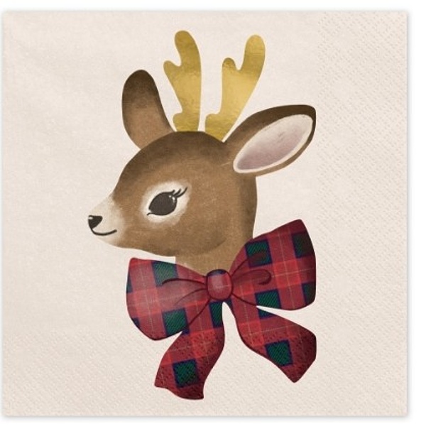 | Vánoční papírové ubrousky s roztomilým motivem soba s červenou mašlí. Ideální doplněk pro svátečně prostřený stůl, … |
