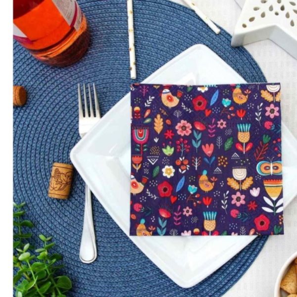 Krásně barevné papírové ubrousky Summer Have fun s folkovým zdobením krásně oživí váš letní prostřený stůl.