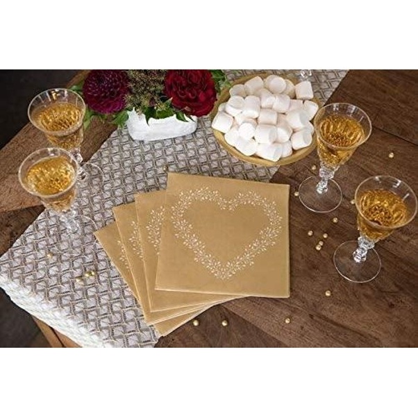 | Ubrousky jednorázové Airlaid ve zlaté barvě s bílým srdíčkem Krásný doplněk stolování na svatební tabuli, … |