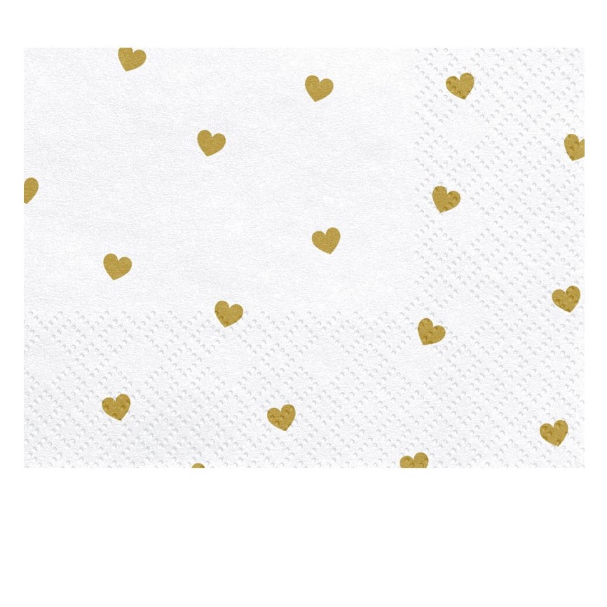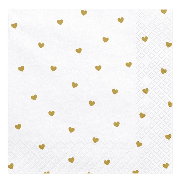 Krásné bílé ubrousky se zlatými malými vytištěnými srdíčky.