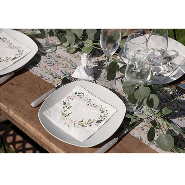 Krásné papírové ubrousky Green s jemným květinovým vzorem jsou dokonalým doplňkem na váš svatební stůl.