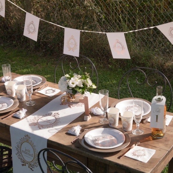 Oslavte svou svatbu se svými blízkými a krásnou výzdobou stolu s těmito rpmantickými ubrousky z růžového zlata.