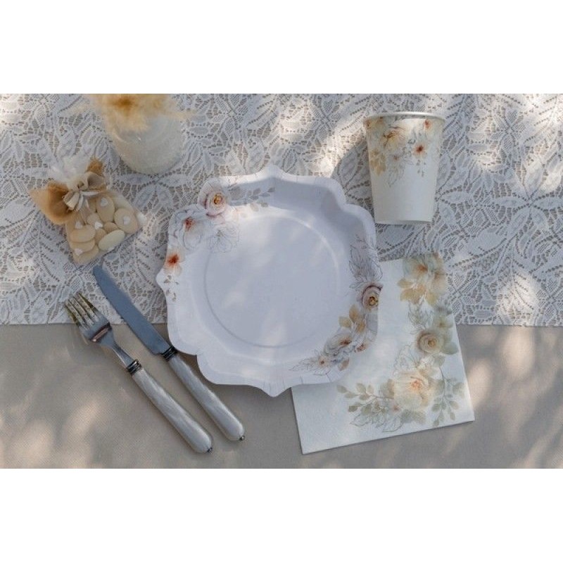 Ubrousky papírové s ilustrací béžových květin a lístků