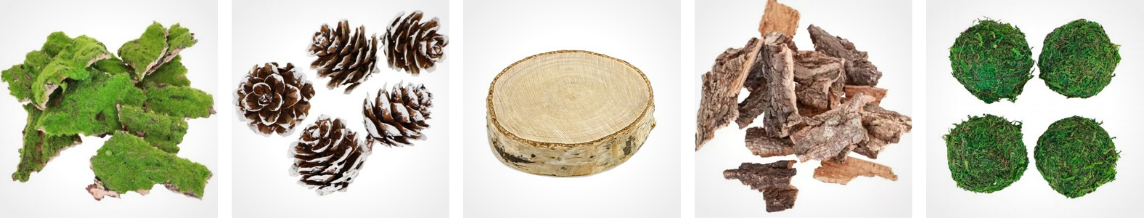 Nebojte se přírodních materiálů - krásné jsou šišky, suché větvičky, vřes, jeřabiny. Ale také kůra, mech a dřevo. Trvanlivé kousky, které vám vydrží pár let (ať už šišky nebo větvičky cesmíny) samozřejmě pořídíte i v našem e-shopu), ale jinak se tady dá dost ušetřit. Všeho tohohle je plná zahrada. Nebo vemte na procházku hafana a vyražte do lesa. A když už jsme u přírodních doplňků, je jasné, že chybět by neměly plátky sušených jablíček nebo pomerančů.