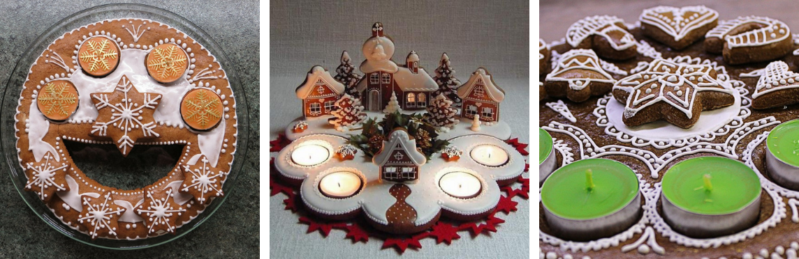 A ti opravdu šikovní jedinci s kreativní duší si svůj věneček upečou (obrázek níže). Krásné adventní věnečky se velmi často pečou z perníkového těsta. A při dobrém skladování vám vydrží roky. Ale - jak jsme už říkali - tohle už chce trochu šikovné ruce a praxi!