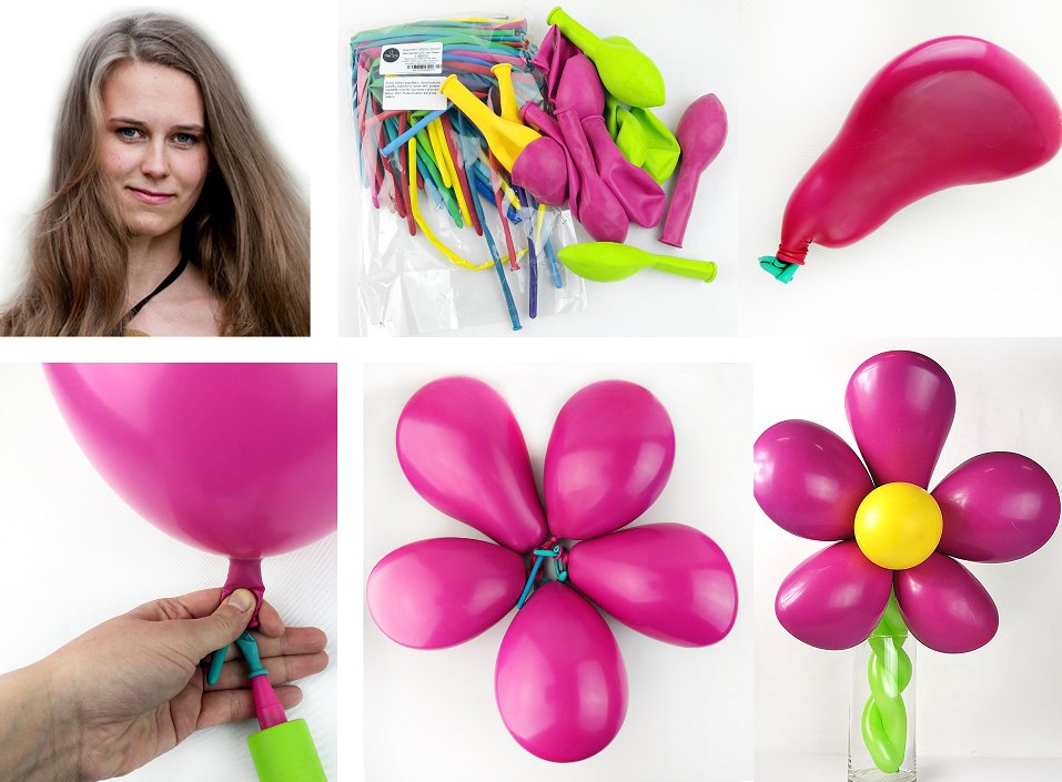 Jen na vysvětlenou. Na první fotce našeho návodu je jedna z našich nejhezčích "květinek", šikovná dekoratérka Petra, která pro vás dnešní kytičku vyzkoušela a nafotila. A připomínáme, že ještě pár dnů máme v akci helium, které se vám bude hodit.