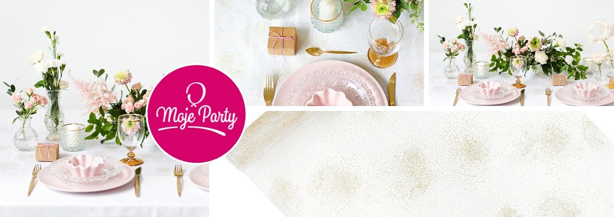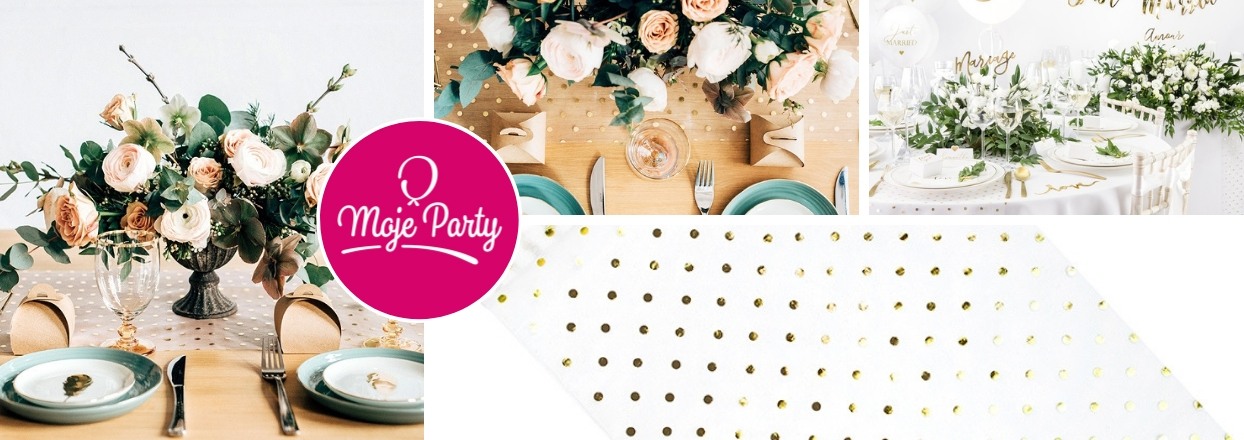 Opravdu jemný vzor, který dodá Vaší svatební tabuli opravdu něžný půvab. Organzu se zlatý puntíkem nenásilně doplníme bílými květy, čímž docílíme opravdu elegantní a čistý vzhled slavnostního stolu. Špatná volba nebude ani kombinace s trendovou broskvovou nebo lehce růžovou. Svatební tabuli můžete doplnit elegantními jmenovkami . Nebo jiný tip. Sdělte svatebním hostům, že jste zamilovaní. Jak? Zlatým nápisy "love", které dodají svatební tabuli orginalitu a nevšednost. Inspirovali jste se? Nám se tahle kombinace zdá naprosto úžasná. Neváhejte s nákupem.