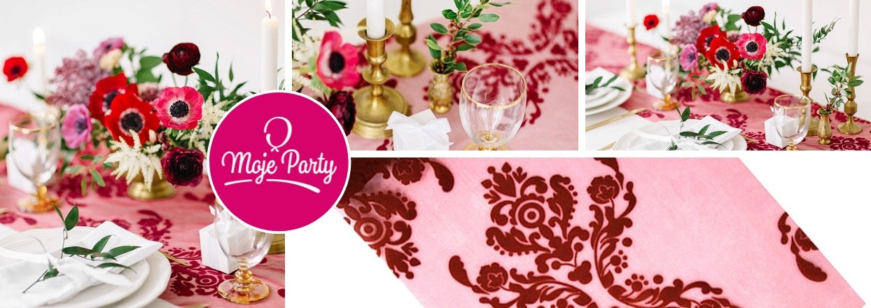 Vinová je výraznou barvou sezóny, proto doporučujeme i stylově okázalejší organzu s rubinovým sametovým dekorem. Tato tabile nepůsobí příliš minimalisticky, ale tvarově bohatě. Osloví proto všechny, kteří mají rádi dekorativnost a zdobnost.