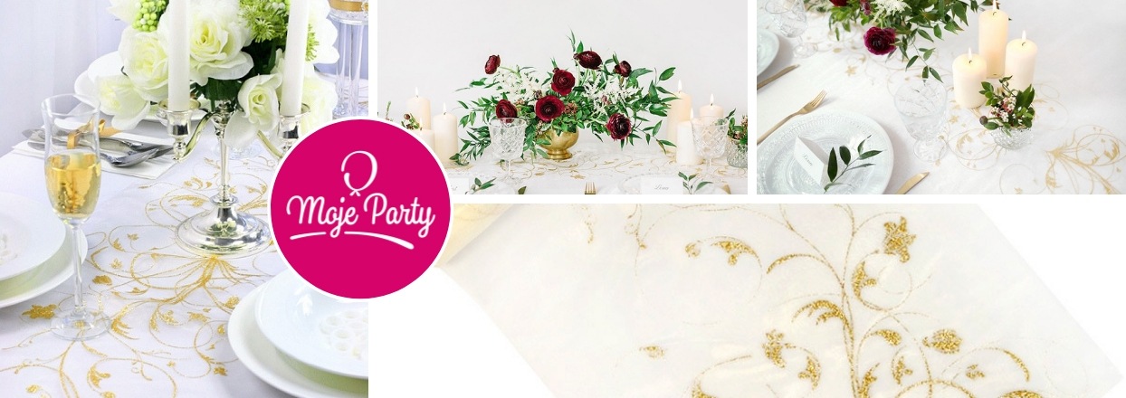 Organzy nejsou jen tipem na svatební stolování. Ať již s dekorem nebo bez dekoru, organzy se dobře vyjímají na každé slavnostnější tabuli. Velmi oblíbené jsou právě na vánočních stolech. Jemný dekor se zlatými vločkami je osvědčenou vánoční volbou. Při této kombinaci se nemusíte vzdát ani tradiční červené. Naopak květinové dekorace s výraznějšími květy, budou to pravé. Kulaté svícny, dekorativní kuličky a další zlaté doplňky, rovněž najdete v našem e-shopu. Pro nedočkavce, můžete drobný dárek od "Ježíška" naaranžovat již v rámci štědrovečerní večeře.
