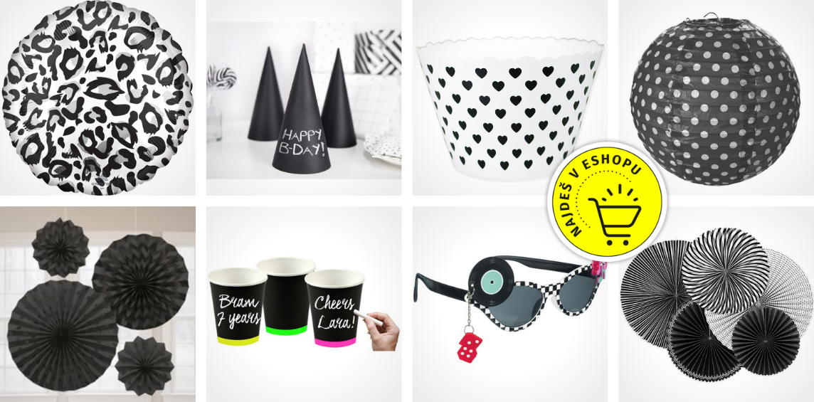 No a samostatnou kapitolou jsou samozřejmě balonky. Zkuste černobílé puntíkaté balonky nebo buket pěti černobílých balonků ve stylu black &white.