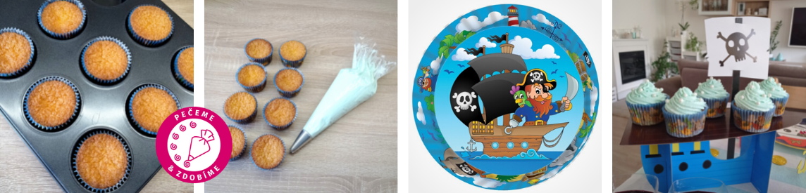 Než se dáte do pečení, mrkněte se do naší sekce Pirátská párty, kde najdete tématické doplňky a dekorace vašeho slavnostního candy baru. Iva doporučuje nejprve pokrýt stů jednobarevným papírovým ubrusem a doplnit mořskou stolovou šerpou nebo šerpou s pirátským motivem. Nezapomeňte na tematické nádobí a ubrousky! Jako stojan na menší dezerty a zároveň dekoraci na stůl použijte papírovou pirátskou loď. Nakonec stůl dozdobte drobnými konfetami nebo pirátskými mincemi, které také poslouží jako pirátský poklad.