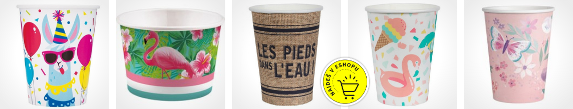 K většině kelímků najdete v našich obchodech a na webu také talířky ze stejných setů. Nezapomeňte ani na papírové mističky na oříšky, popcorn nebo zmrzlinu! Mimochodem, letos je v kurzu mangová. A vůbec není těžké, udělat si ji doma! Tady je recept (alespoň jeden, pro dnešek).