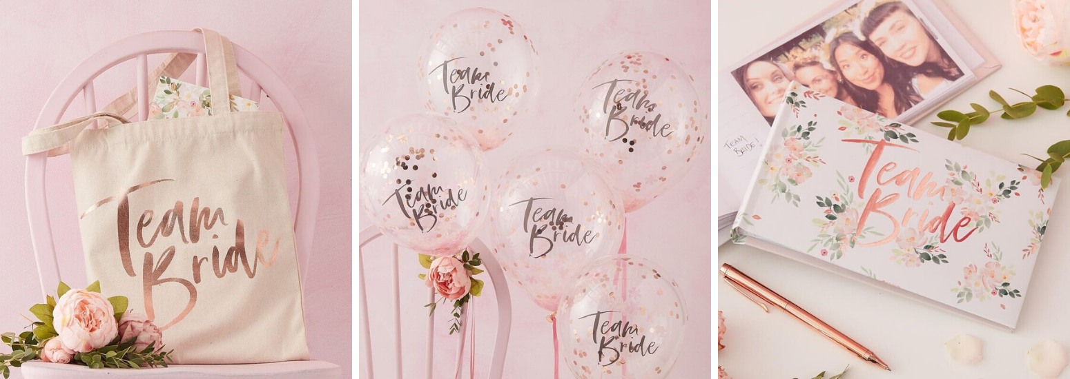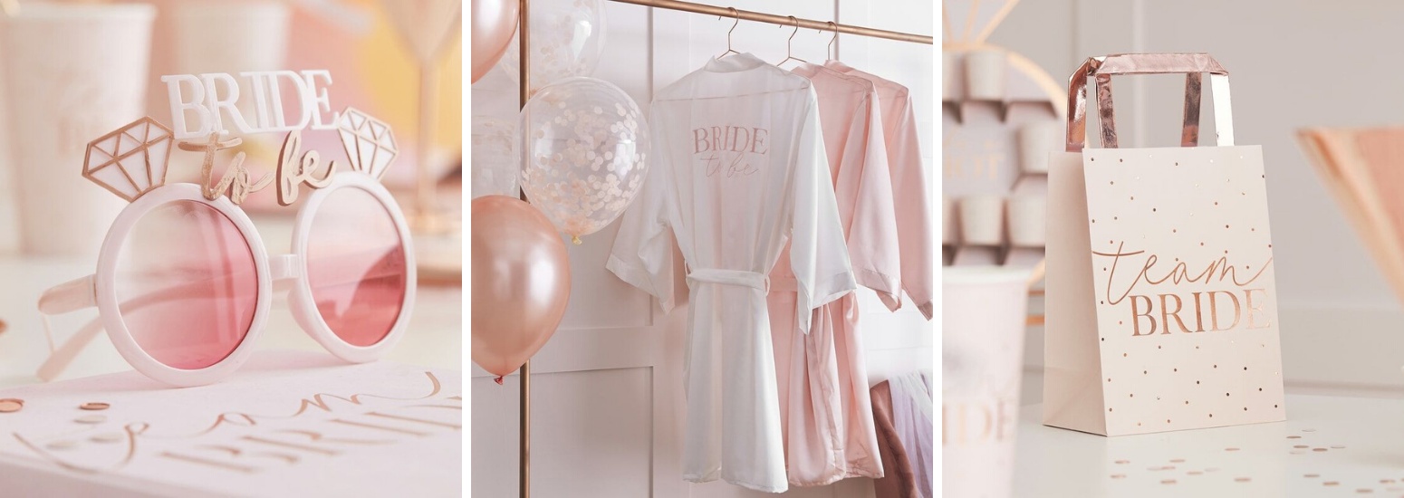 V sadě Blush Han najdete pár hezkých designových kousků, které každá nevěsta ocení. Stylové brýle do fotokoutku nebo župánek s nápisem BRIDE, který se bude hodit v okamžiku, kdy se nevěsta bude připravovat a strojit do svatebních šatů.