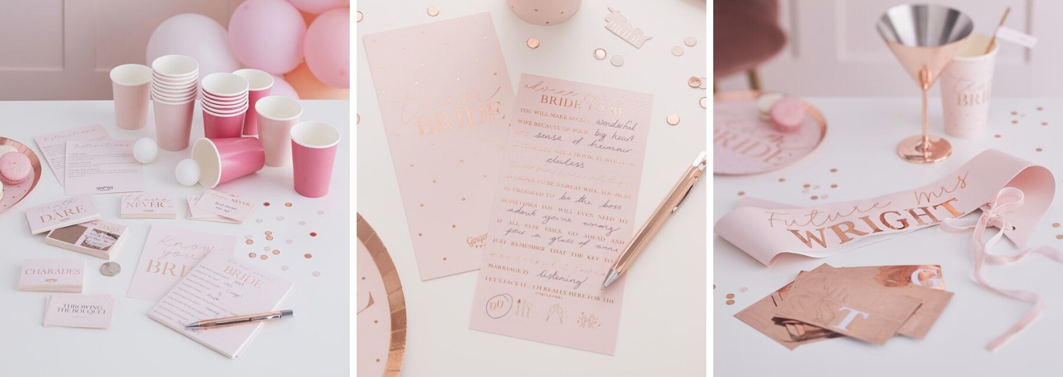 Fotokoutek na rozlučce prostě musí být! Co nevyfotíte, to jako by nebylo. A z čeho byste chtěli sestavovat album pro nevěstu? Na fotografie se určitě pozdějí rádi podívají i svatební hosté. Z kolekce Blush Han doporučujeme Photo Booth, který bude barevně i designově ladit. Každé balení Photo Booth obsahuje 10 rekvizit, včetně: 1x Budoucí paní, 1x Brýle na zábavu Team, 1x Brýle na srdce, 1x rty, 1 x Koktejlové sklo, 1x Diamantový prsten, 1 x Team Bride, 1x Koruna, 1x Řekla Ano a 1 x L Deska se znaménkem a 2 listy dopisů z růžového zlata pro skutečně kreativní rozlučkovou párty. V balení najdete také 2 listy se samolepkami z růžového zlata.