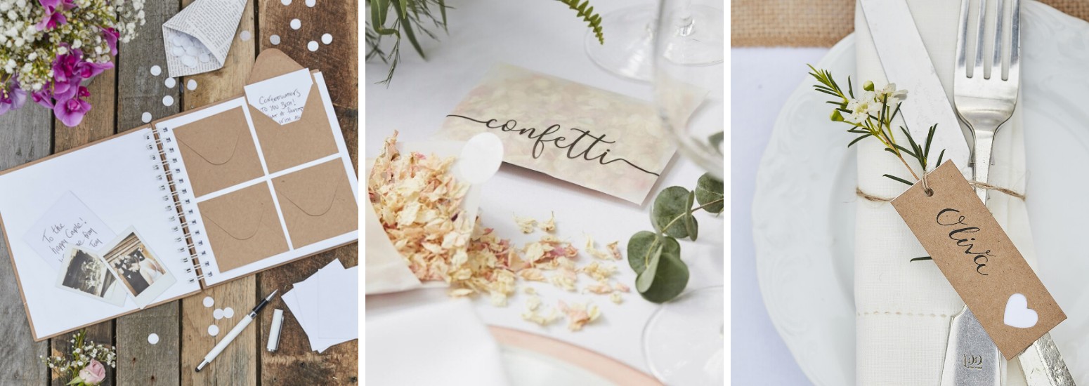 Svatební oznámení, jmenovky, krabice na výslužku nebo knihy z recyklovaného papíru