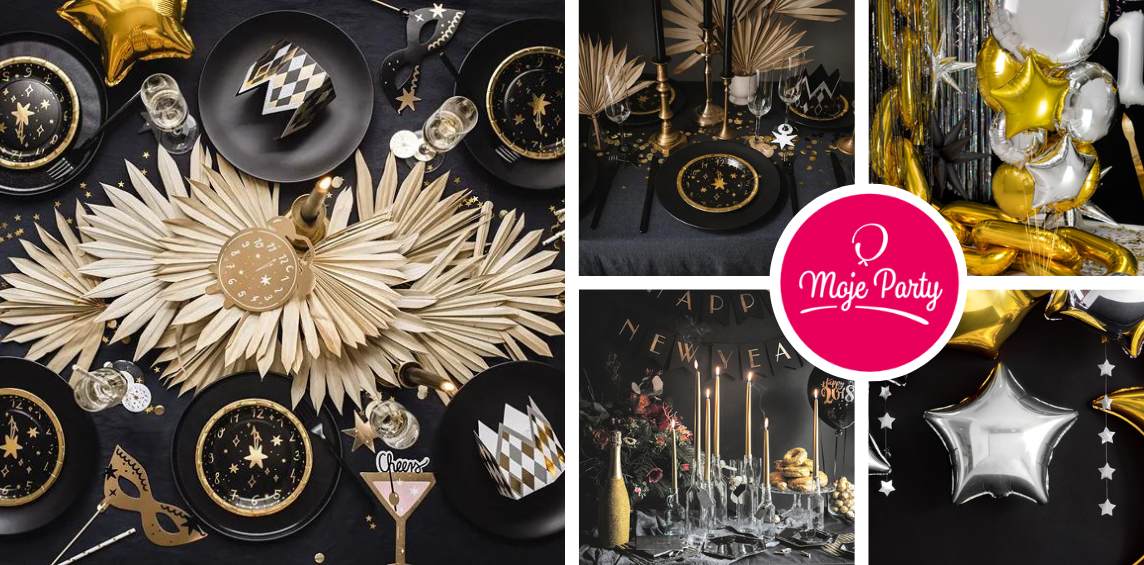 Černá barva je elegantní a tajemná. A komu připadá smutná, ten si musí uvědomit, že se koneckonců loučíme se starým rokem, takže je na místě! Když se podíváte do rubriky VIP párty, Velký Gatsby nebo Párty černobílá, najdete tady spoustu kousků, které vám se silvestrovskou výzdobou pomůžou. Každopádně se vybavte spoustou balónků. Hodně starostí vám vyřeší dekorační sety, ve kterých většinou najdete všechno nezbytné pohromadě - balónky, bannery, nádobí, čepičky nebo foukačky. Nezapomeňte všechno fotit! A jestli mají být vaše fotky originální, bude to chtít tematické sety do fotokoutku!